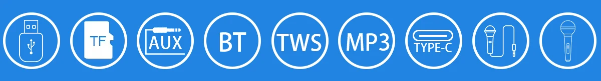 3.Support USB/AUX-IN/AUX-OUT/FM/TWS